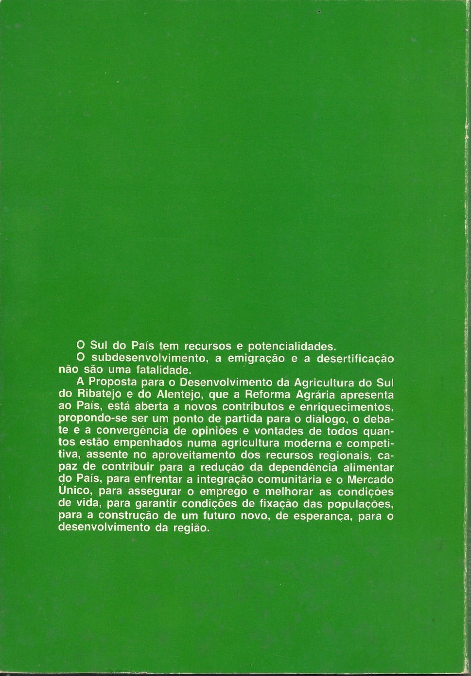 “PROPOSTA PARA O DESENVOLVIMENTO DA AGRICULTURA DO SUL DO RIBATEJO E DO ALENTEJO” que constituía uma verdadeira e séria alternativa à política criminosa, anti-constitucional, anti-Patriótica, que PS-PSD-CDS vinham desenvolvendo para reconstituir os privilégios de latifundiários e capitalistas agrários, causa do atraso e subdesenvolvimento da Agricultura Portuguesa e, sobremaneira, causa do atraso e subdesenvolvimento de todo o Alentejo.