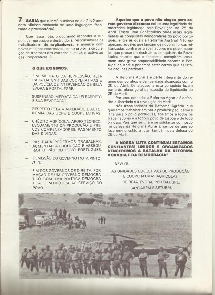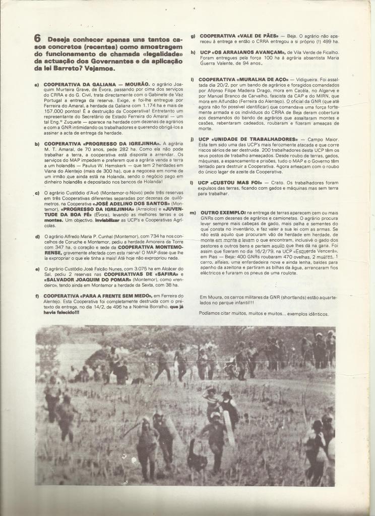 Bem pode procurar, através das mentiras um milhão de vezes repetidas, cuidadosa e convenientemente propagandeadas pela subserviente comunicação social, com o apoio de poderosas fundações, e as repetidas citações das mesmas como absolutas e incontestadas verdades por alguns historiadores de pacotilha, tentar convencer a opinião pública que a sua criminosa “Lei Barreto” era uma boa lei. Uma lei democrática, que respeitava a letra e o espírito da Constituição da República, respeitadora dos direitos e interesses dos trabalhadores e dos pequenos e médios agricultores, cuja aplicação, iria libertar o Alentejo e Sul do Ribatejo da ameaça comunista, acabar com um estado dentro do estado, repor a legalidade e assegurar a sociedade da paz e abundância, pondo fim à política de miséria e fome existente nas UCP.s… enfim, a ladaínha mentirosa própria de quem, de má consciência, tudo faz para sacudir a água do capote e procurar apresentar-se como o salvador da democracia… o corajoso democrata que evitou a guerra civil… o cidadão impoluto sem o qual teríamos perdido a Liberdade…