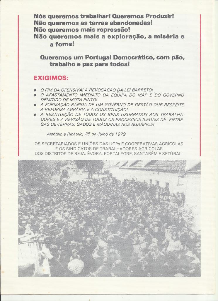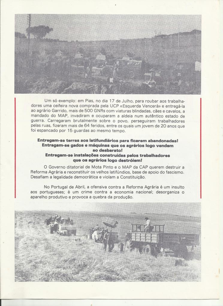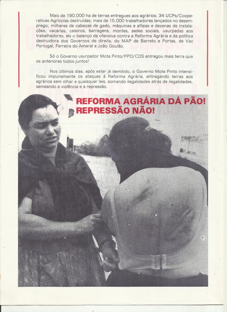 Da responsabilidade do Secretariado da CGTP-IN o documento “O que é a Reforma Agrária”, de 11.7.1977, é sem dúvida um documento da maior importância para quem quiser compreender o real significado da famigerada “Lei Barreto” e o papel do PS, sob a direcção de Mário Soares, na destruição criminosa e anti-constitucional da “REFORMA AGRÁRIA – A Revolução no Alentejo”.