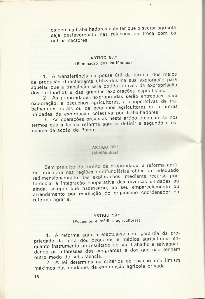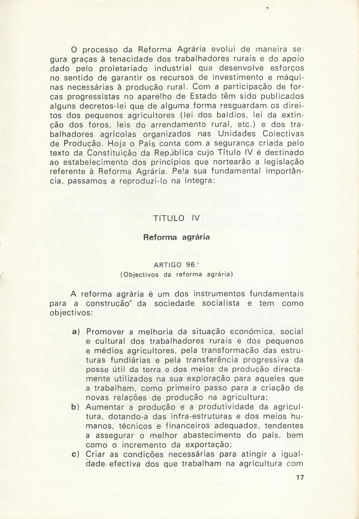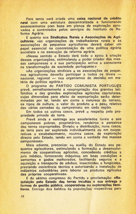 Na Assembleia Constituinte, o PCP teve sempre uma intervenção clara e coerente com o expresso no seu programa e com as declarações públicas dos seus principais dirigentes, propondo, defendendo e votando favoravelmente todas as propostas que melhor garantissem as mais amplas liberdades e direitos fundamentais de todos os cidadãos, dando particular atenção aos direitos dos trabalhadores, como o testemunham as actas dos debates disponíveis nos Arquivos Históricos da Assembleia da República relativos à Assembleia Constituinte. Dessas posições, sobre a REFORMA AGRÁRIA, darei nota na 3ª parte deste capítulo.
