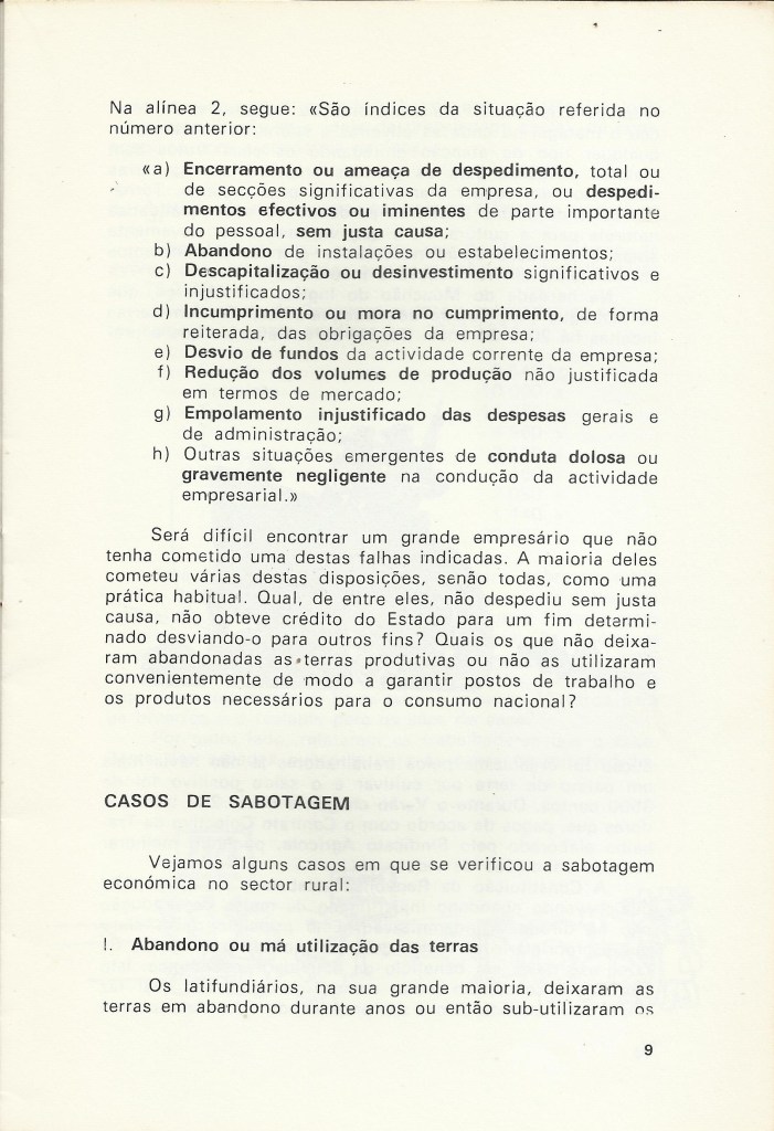 A VERDADE é que, quando se avançou para as primeiras ocupações, por decisão dos trabalhadores, por proposta do seu Sindicato, não havia sequer qualquer garantia de apoio às mesmas por parte do MFA.