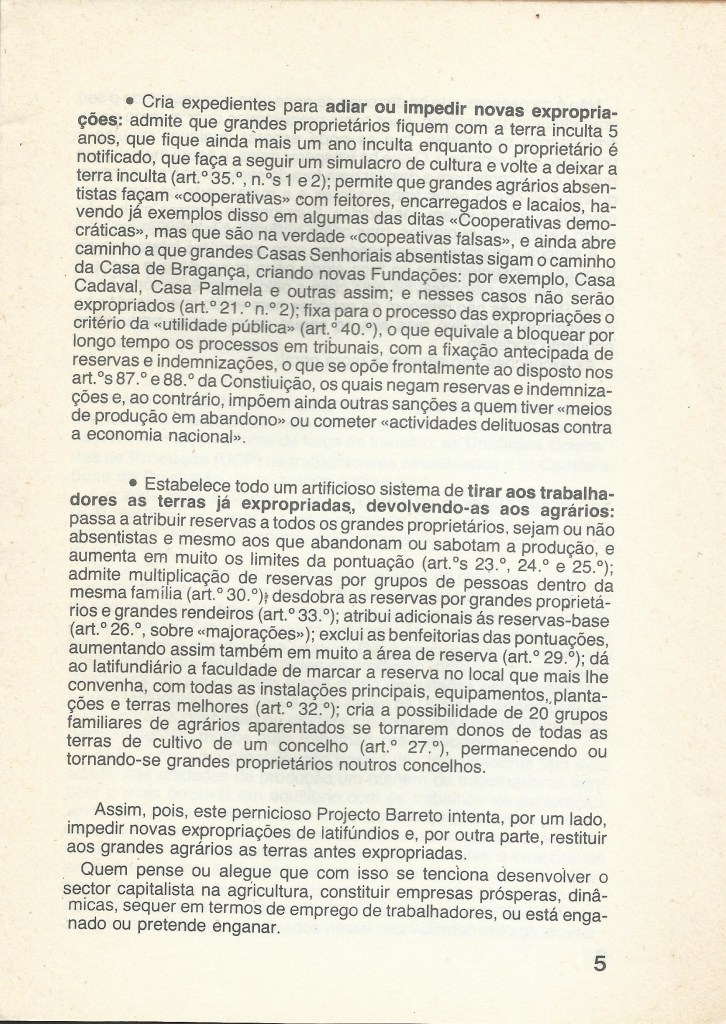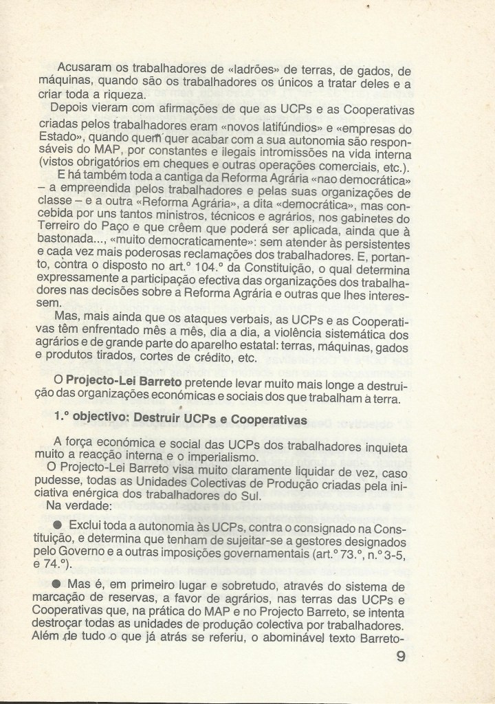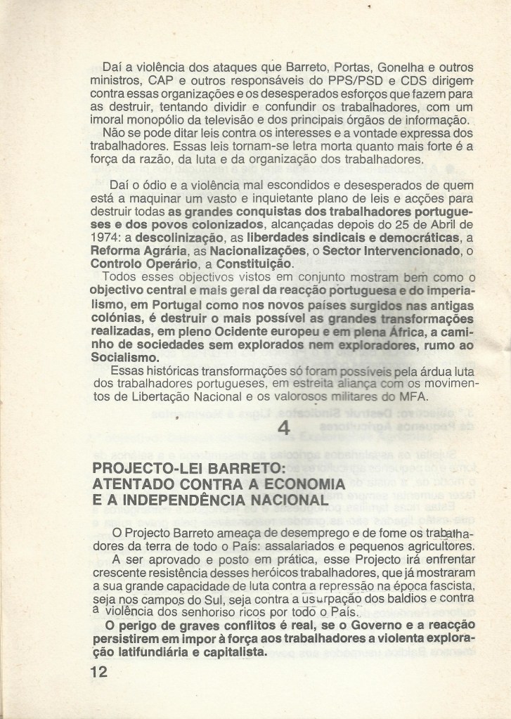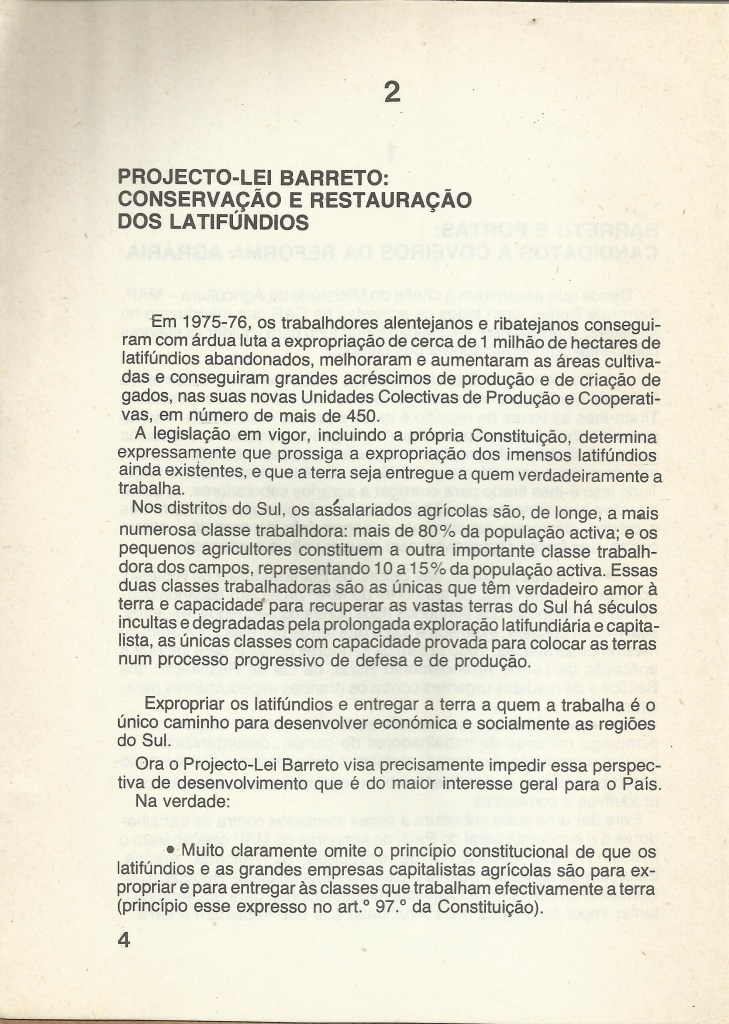 Por outro lado, não reconhecer a “Legalidade Revolucionária” resultante do 25 de Abril de 1974, questionar a legitimidade das conquistas alcançadas pelo Povo Português ao abrigo da mesma, classificando a acção patriótica dos trabalhadores contra a sabotagem de “ocupações selvagens” e “ilegais” porque feitas à margem de qualquer lei, escamoteando a razão pelas quais as mesmas se tornaram uma necessidade, e invocar o facto dos sindicatos agrícolas ainda não estarem legalmente formalizados de acordo com a Lei (só se fosse a fascista que os não reconhecia, já que outra ainda não existia) ou o facto da ALA poder não representar todos os agricultores, para questionar e concluir pela ilegitimidade das convenções de trabalho livremente assinadas e questionar o reconhecimento e papel dos jovens sindicatos agrícolas junto e nas instituições e fora delas, como faz António Barreto, é sem dúvida uma excelente anedota para contar aos nossos netos.