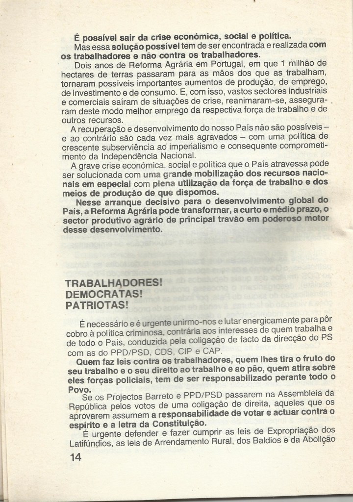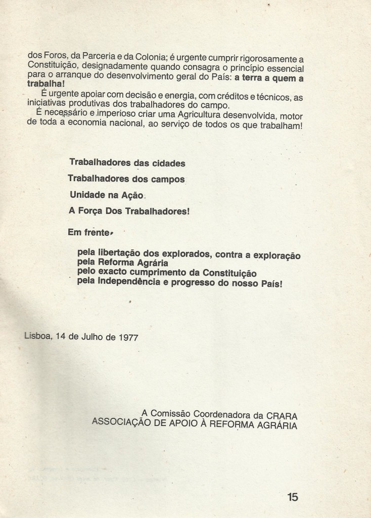 “A REFORMA AGRÁRIA – A Revolução no Alentejo” e Sul do Ribatejo não teve início em obediência a qualquer orientação da Direcção do PCP. Isso sim, seria uma manifesta violação dos compromissos e da palavra dada pelo PCP ao MFA.